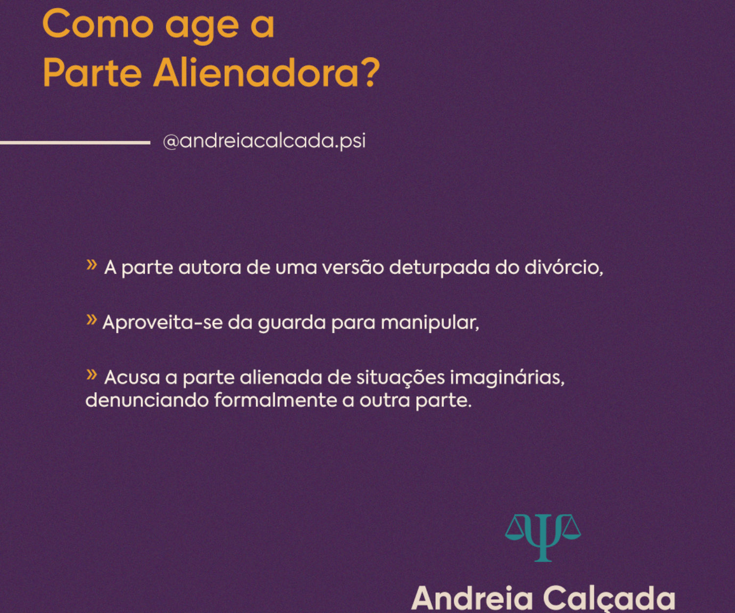 É autora de uma versão deturpada do divórcio, colocando-se como vítima e convencendo a criança ou adolescente de também serem…