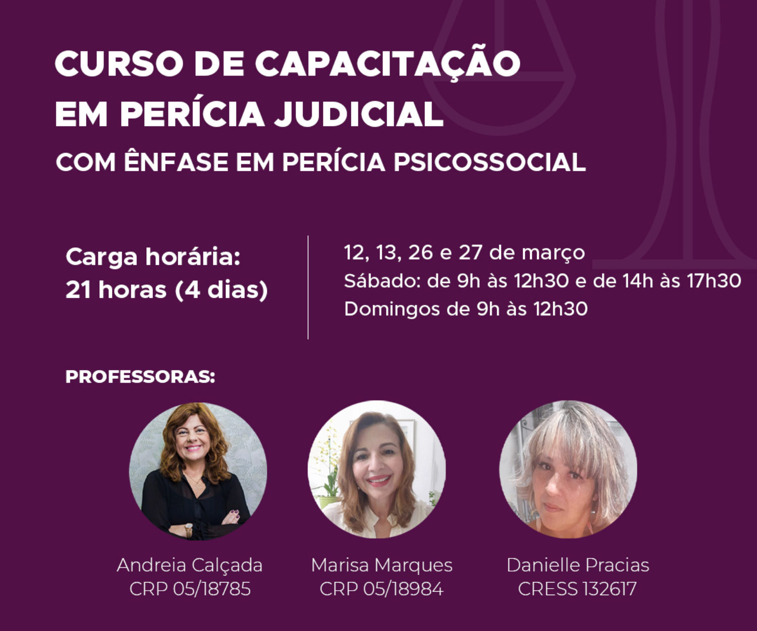 • Curso de Capacitação em Perícia Judicial – com ênfase em Perícia Psicossocial