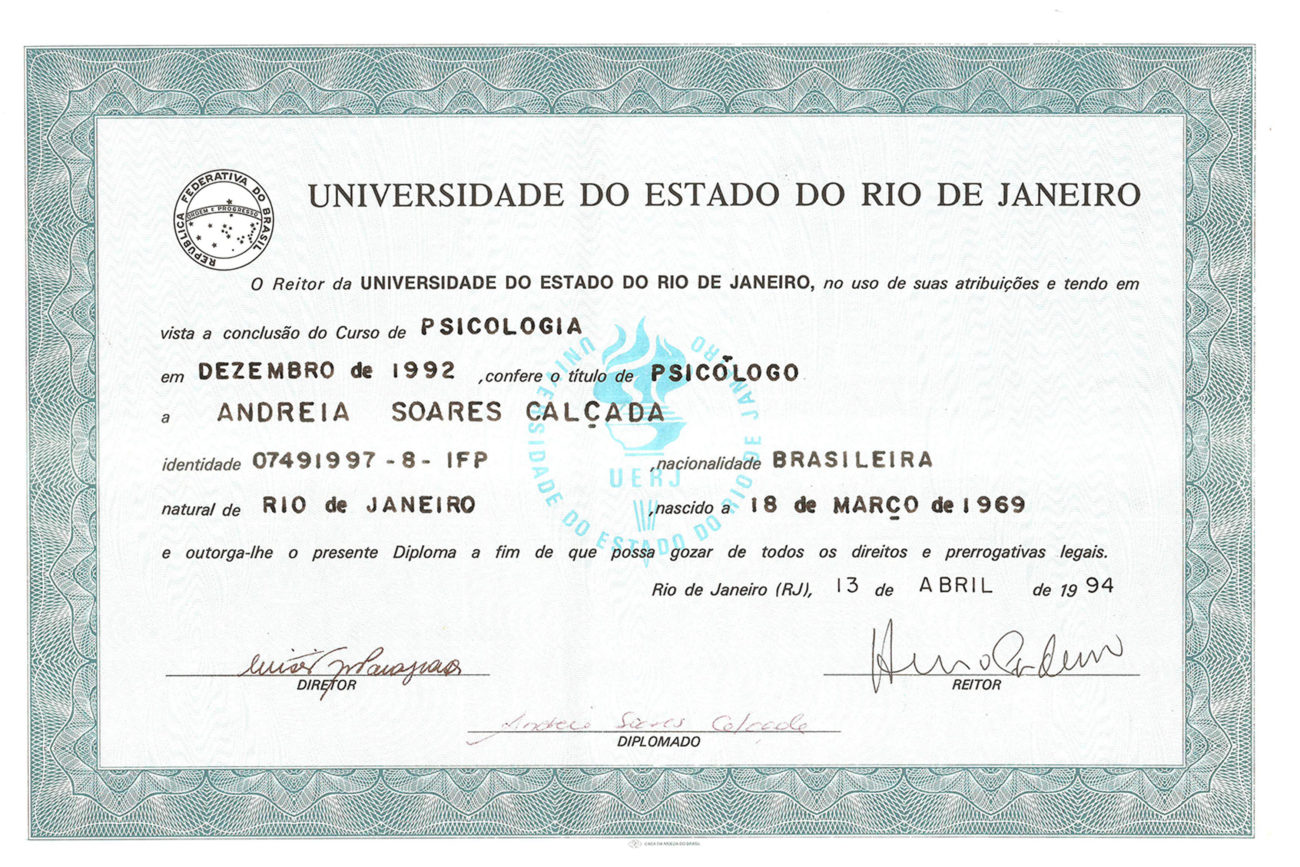 • Psicoterapeuta com formação em Gestalt – Terapia – 1992