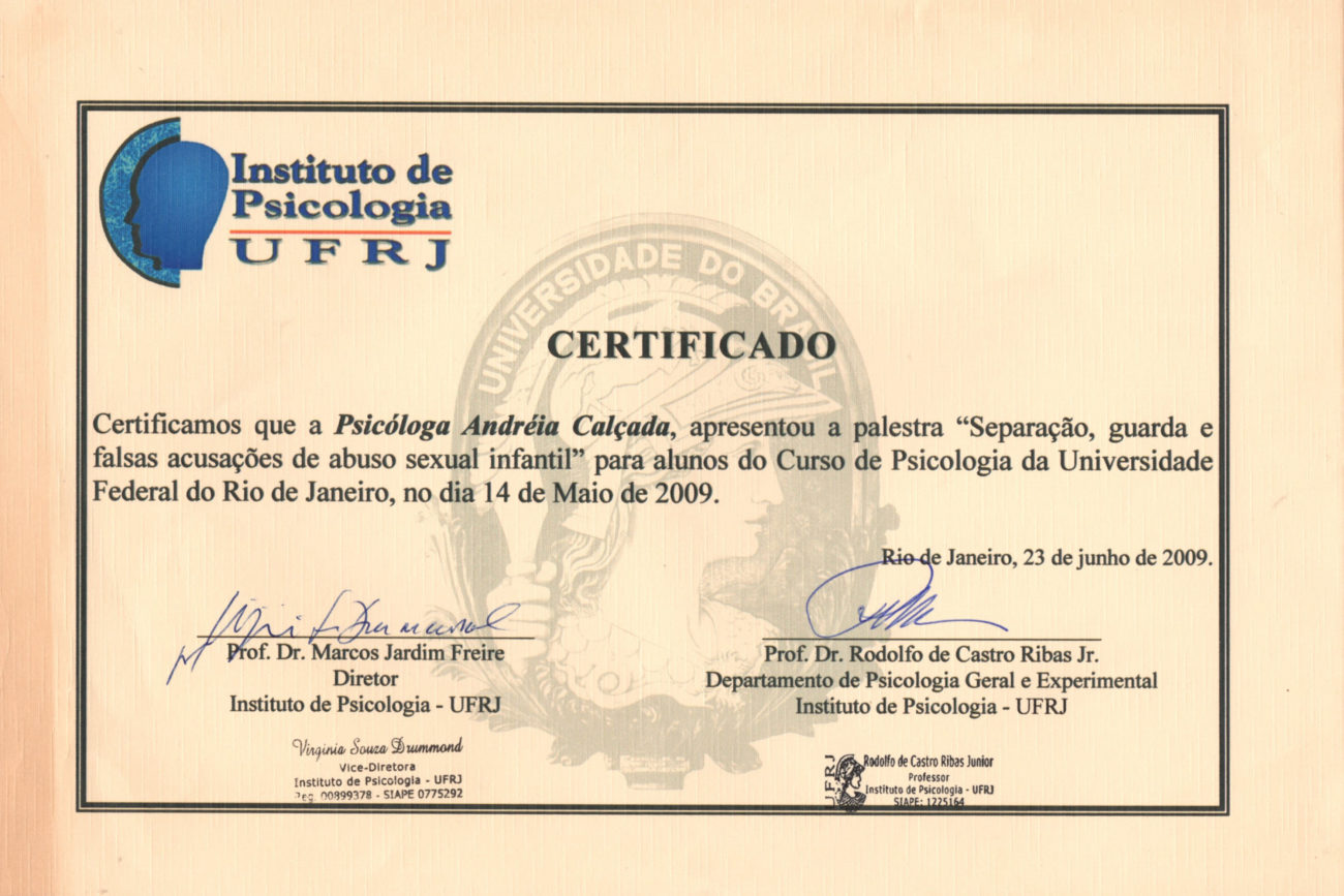 • Membro da ABPJ – Associação Brasileira de Psicologia Jurídica